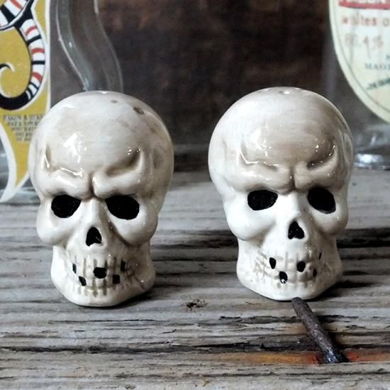 食卓に是非!陶器製のスカルヘッドのソルト&ペッパーセット☆