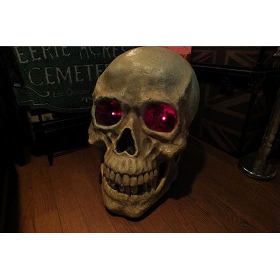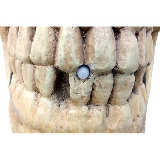 歯の中央にある光センサーで反応し、笑い声と共に目を赤く点滅させます。
