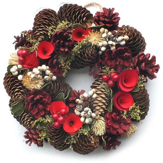 華やかなドライフラワーで作られたクリスマスリース・花飾りです♪