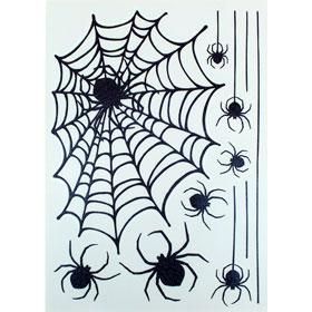 ステッカー部:スパイダーウエブ(大):約縦32cm 幅23cm、スパイダー3〜10cm、クモの糸:10〜38cm