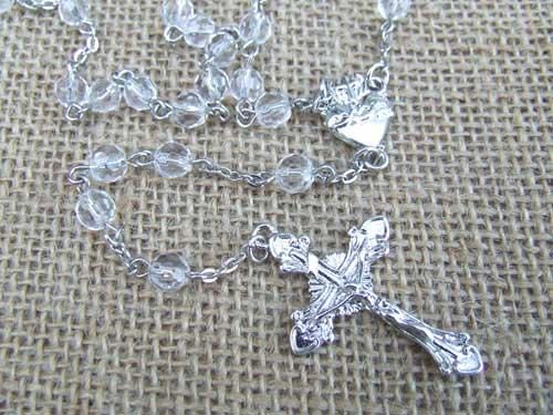 ロザリオネックレス キリストクロス クリスタルクリアー