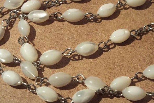 濃淡の色合い、不透明の混ざり合いが綺麗な光沢を放つ楕円形のマザー・オブ・パールが清楚で落ち着いた雰囲気です。