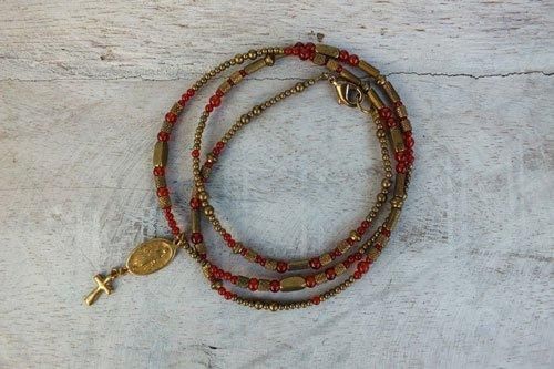 ネックレスとしても、3連ブレスレットとしてもご使用できる お守りネックレスです。