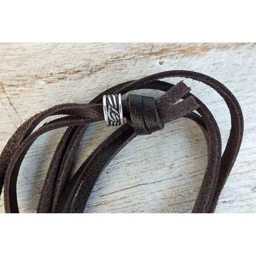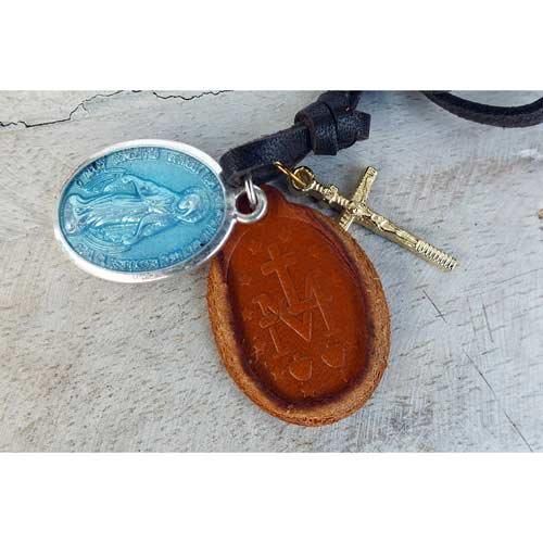 レザーネックレス 聖母マリアメダイ&クロス ブラウン