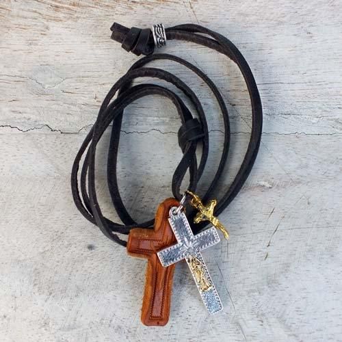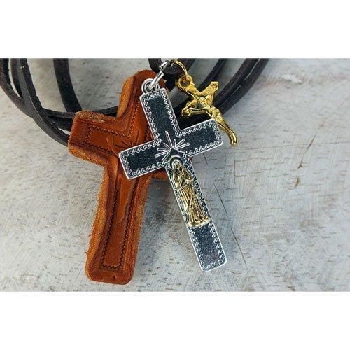 洗いを施した十字架レザーに型押しスタンプを施し、クロスデザインも凝っています。