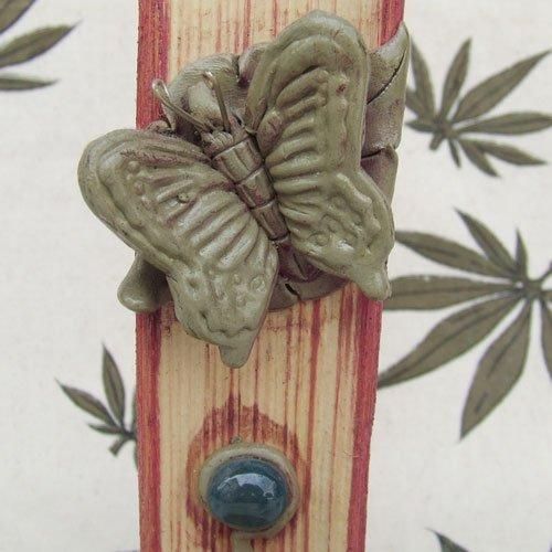 蝶と葉っぱの装飾が施され、アクセントに天然石を用いています。
